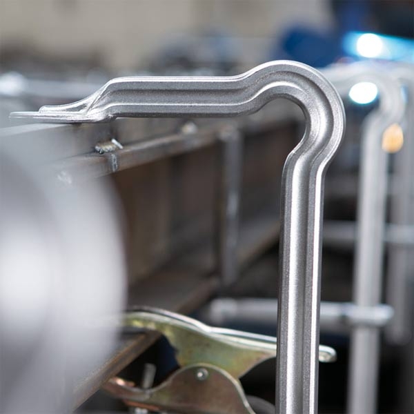 Der aus einem Stück geschmiedete Festbügel mit der angeformten Druckplatte ist vergütet und verzinkt, dadurch hochbelastbar und verwindungssteif. Die Zwingen spannen federnd und elastisch.