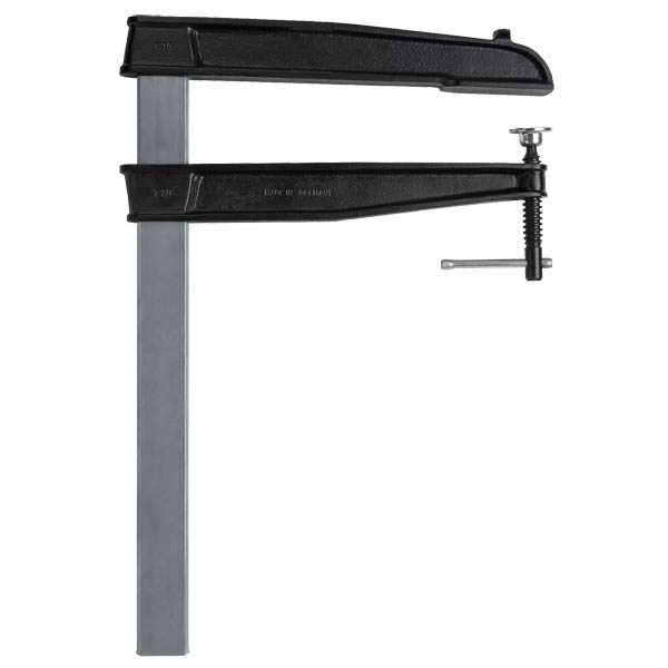 BESSEY Temperguss Tiefspann Schraubzwinge mit Knebelgriff mit abgerundeten Enden für eine einfache Kraftübertragung beim Anspannen. Damit meistern Sie Ihre Aufgaben und Anwendungen in Zukunft noch einfacher und bequemer. Massive Tiefspann Temperguss Schraubzwinge mit stabiler Vollprofilschiene und Riffelung.