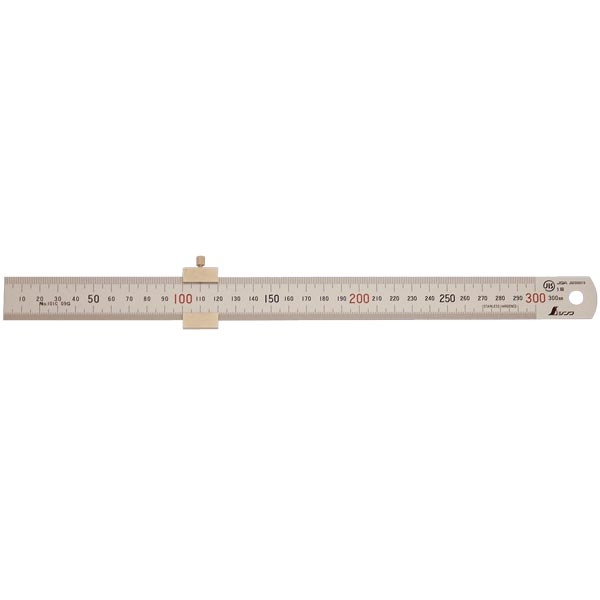 Japanisches Präzisionsstahllineal mit einer Länge von 300 mm. Der praktische Stopper ist ideal für wiederkehrende Anreissaufgaben, wie es häufig bei Holzverbindungen in der Tischlerei und Zimmerei vorkommt. Auch sehr praktisch für Tiefenmessungen und deren anschließendes Übertragen.
