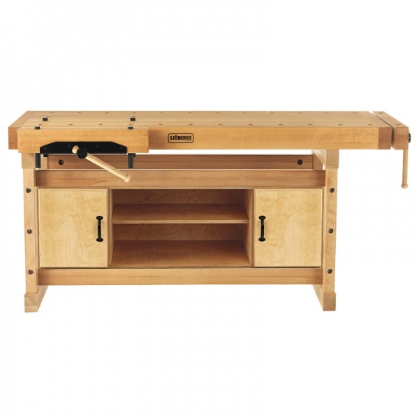 Die Sjöbergs Hobelbank Elite 2000 ist meisterhaft und stark in Qualität und Ausführung. Diese schwedische Hobelbank überragt nicht nur dank ihrer mustergültigen Verarbeitung sondern auch mit ihrem strammen Gewicht alle vergleichbaren Modelle! Die Elite Hobelbänke werden nach alter schwedischer Handwerkstradition, verbunden mit modernsten Erkenntnissen der Holzverarbeitung hergestellt. Die Konstruktion massiv in Buche. Die Kernstärke der fein geölten Arbeitsplatte beträgt 85 mm, die Stärke der Vorderkante 110 mm. Die eigens für diesen Einsatz hergestellten Vorderzangen entwickeln bei einer Länge von 600 mm eine enorme Spannkraft. Spanngeschwindigkeit, Genauigkeit und gleichmässige Funktion überzeugen jeden Praktiker. In weniger als zwei Minuten kann die Vorderzange, ganz nach Bedarf – etwa für Linkshänder – auch an der jeweiligen Seitenfront angebracht werden. Ausgehend von der parallel spannenden Zangen-Anordnung ist die Platte mit einer doppelten Bankhakenreihe für je 25,4 mm runde Bankhaken versehen. Mit der Schnellspannzwinge QSH, die nicht nur in die Bankhakenreihe, sondern auch in die Vorderbeine (Bankknecht) passt, lässt sich jedes Werkstück in Sekundenschnelle packen. Die Zangen der Elite 2000 sind massiv mit einer Grösse von 740 mm. Öffnungsweite 145 mm.