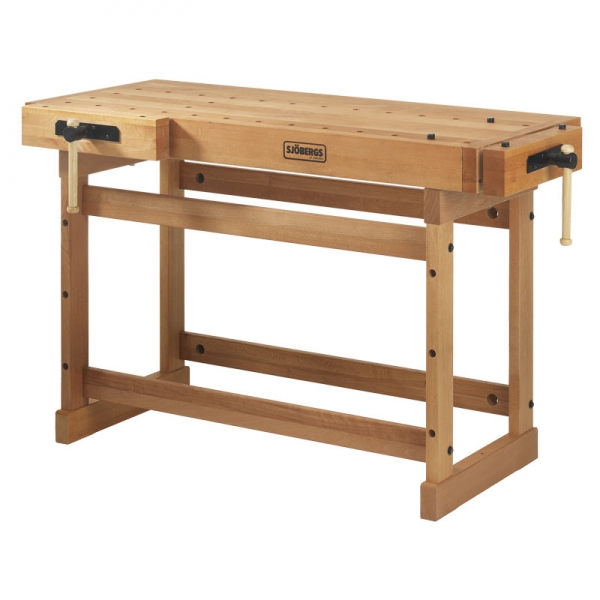 Die Arbeitsplatte ist aus massiv verleimter Buche, geölt, und haben eine parallel spannende Vorder- / Hinterzange mit doppelter Zangenführung. Die Platte ist doppelt senkrecht als auch waagerecht gelöchert für vier Bankhaken. Die Bankhaken-Löcherung ist auch für den Einsatz unserer Spannzwingen geeignet. Vier Bankhaken von 19,05 mm sind stets Teil des Lieferumfanges. Die Bankhaken sind rund und fassen auch unregelmäßige Werkstücke.
