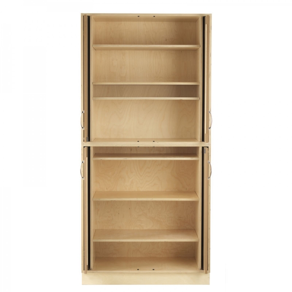 Die Türen dieses Schrankes sind aus Birke gefertigt und lassen sich in den Öffnungen der Schrankseite versenken.