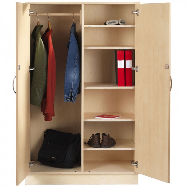 Die Türen dieses Schrankes sind aus Birke gefertigt und haben einen Öffnungswinkel von 170 Grad. Die Einrichtung besteht aus einer Kleiderstange, 4 veränderbaren und einer fest installierten Ablage. Das Mass einschliesslich Sockel ist 1600 mm.