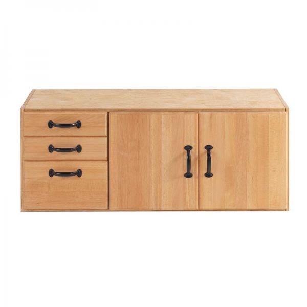 Der Unterschrank besteht aus 3 Schubläden und zwei Türen und ist die ideale Ergänzung für die Hobelbank sowie das Lagern von Werkzeugen.