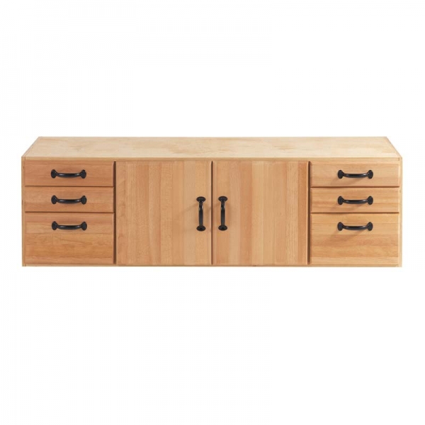 Der Unterschrank besteht aus je rechts und links 3 Schubläden und zwei Türen (mitte) und ist die ideale Ergänzung für die Hobelbank sowie das Lagern von Werkzeugen. Auch der nachträgliche Einbau des Werkzeugschrankes ist problemlos möglich.